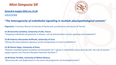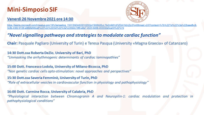 In questa sezione trova spazio una nuova iniziativa denominata “Mini Simposi”, eventi di attualità fisiologica proposti dai Soci che saranno trasmessi in streaming. I Mini Simposi avranno una durata massima di 2 ore, prevedono 3-4 relazioni che svolgano in maniera articolata temi di particolare interesse per la Fisiologia.