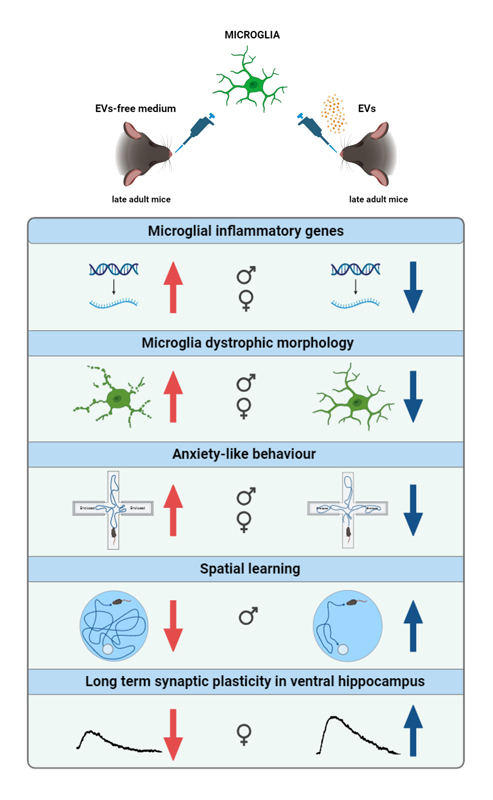 BV2-derived extracellular vesicles modulate microglia inflammatory profile, neuronal plasticity, and behavioural performances in late adult mice |